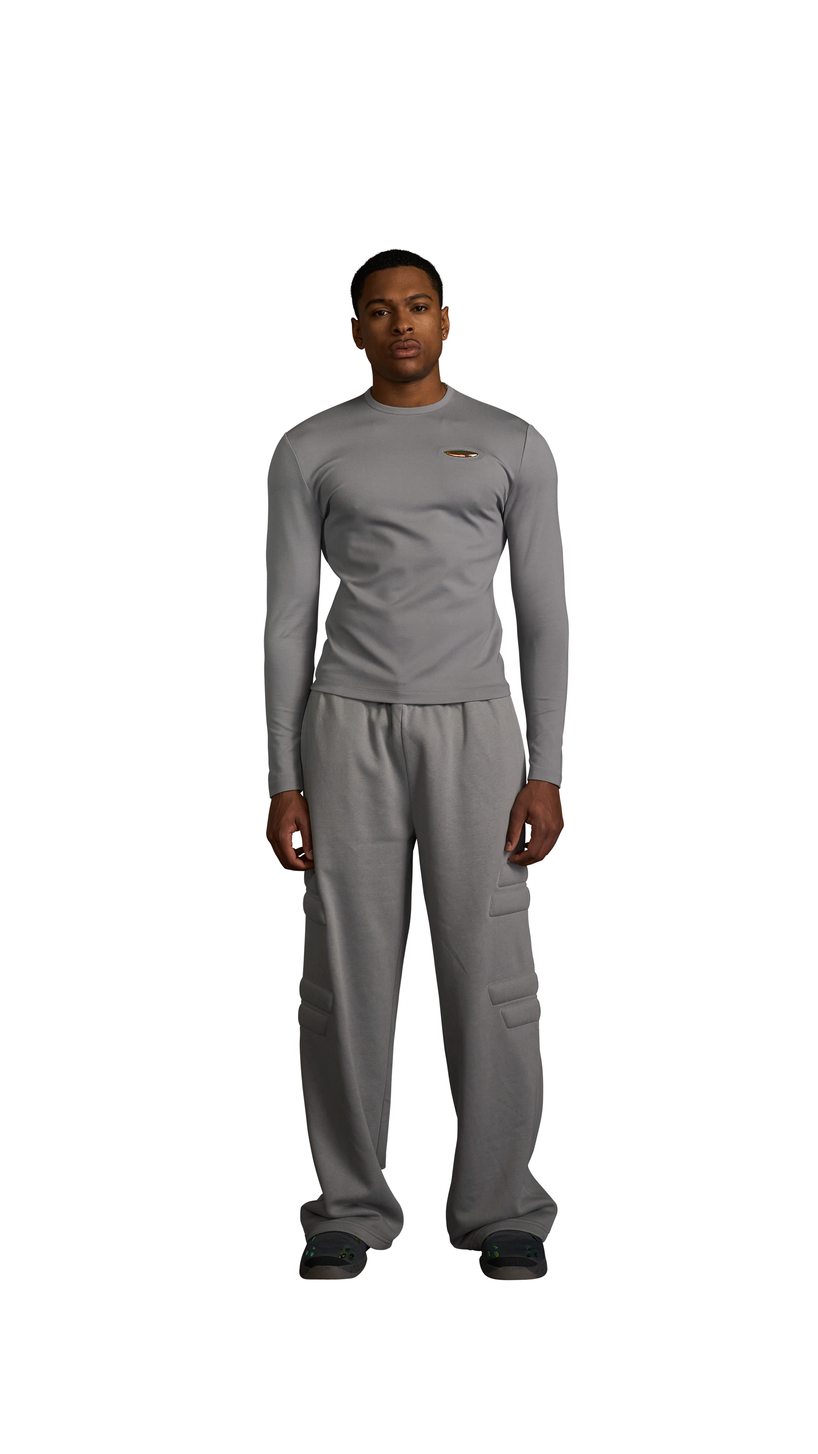 Our long-sleeve crew neck T-shirt crafted from our “kinetic” fabric—a durable, shape-defying blended knit with exceptional stretch and recovery. Featuring a clean, fitted silhouette and thumbhole openings at the sleeve. This piece transitions seamlessly between layering and standalone wear. Featuring our signature iridescent emblem at wearer’s left chest.